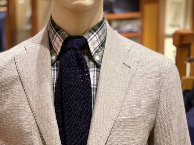 編み方や織り方によってもニットタイの厚さや通気性が異なります。夏用に適した軽やかな織りのニットタイを選ぶと良いでしょう。